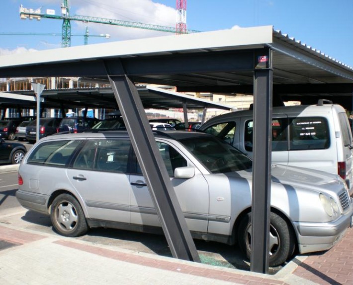 Como empresa especialista en la fabricación de marquesinas de parking hemos desarrollado varios modelos idóneos para soportar la instalación de paneles fotovoltaicos sobre la cubierta.